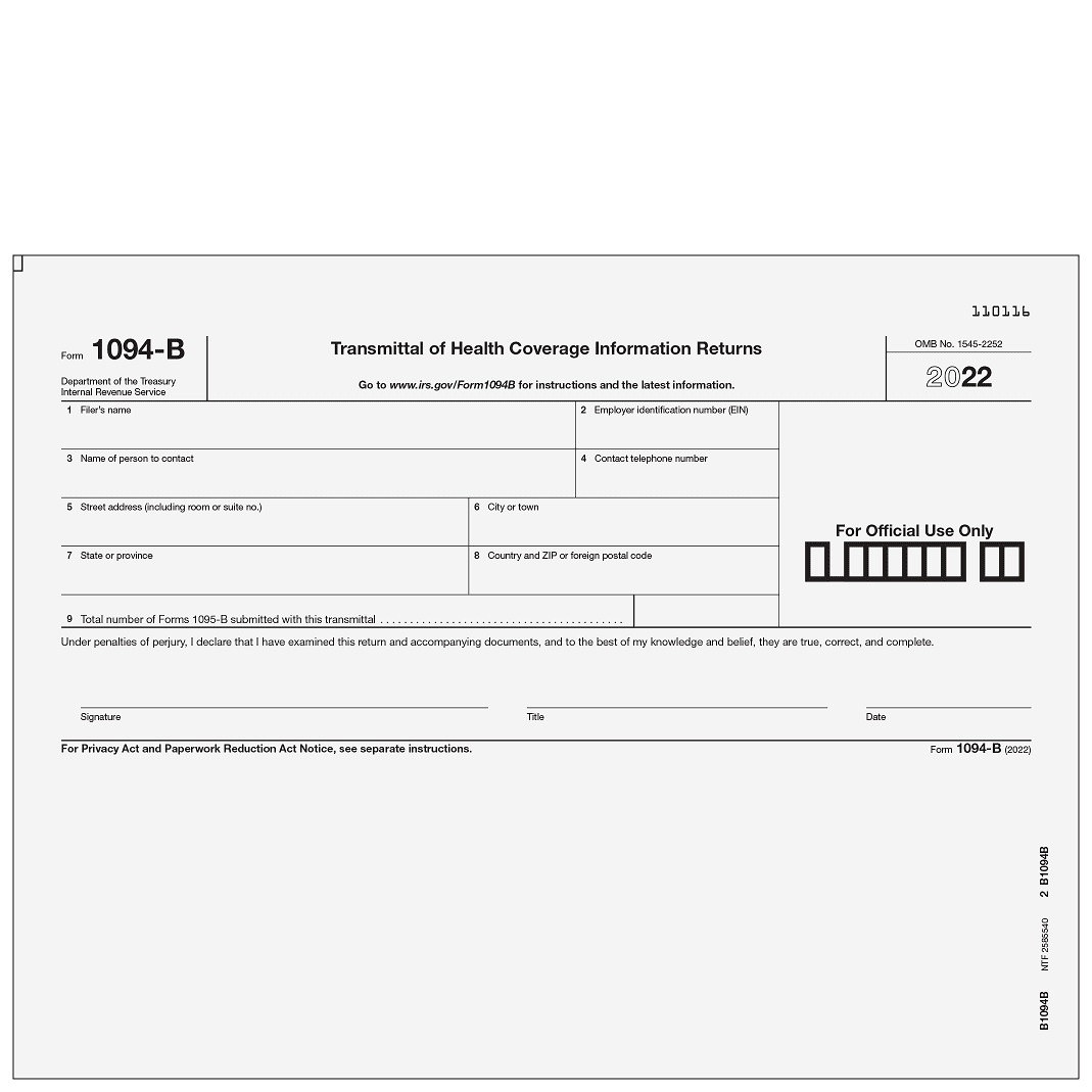 Use the 1094-B Transmittal as a coversheet when submitting multiple 1095-B forms to the IRS